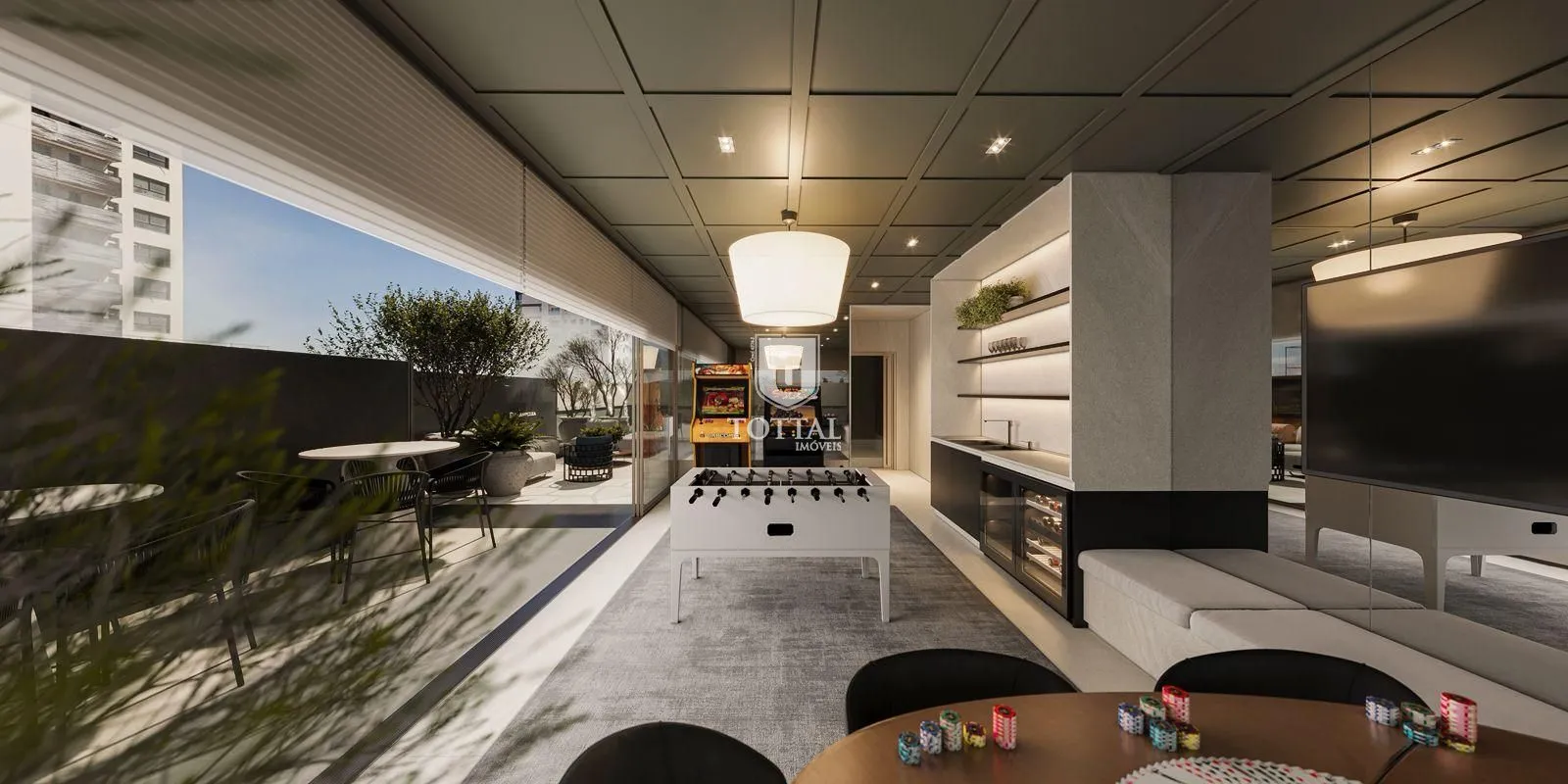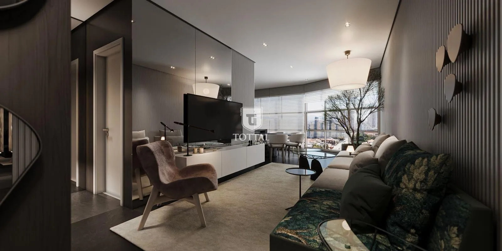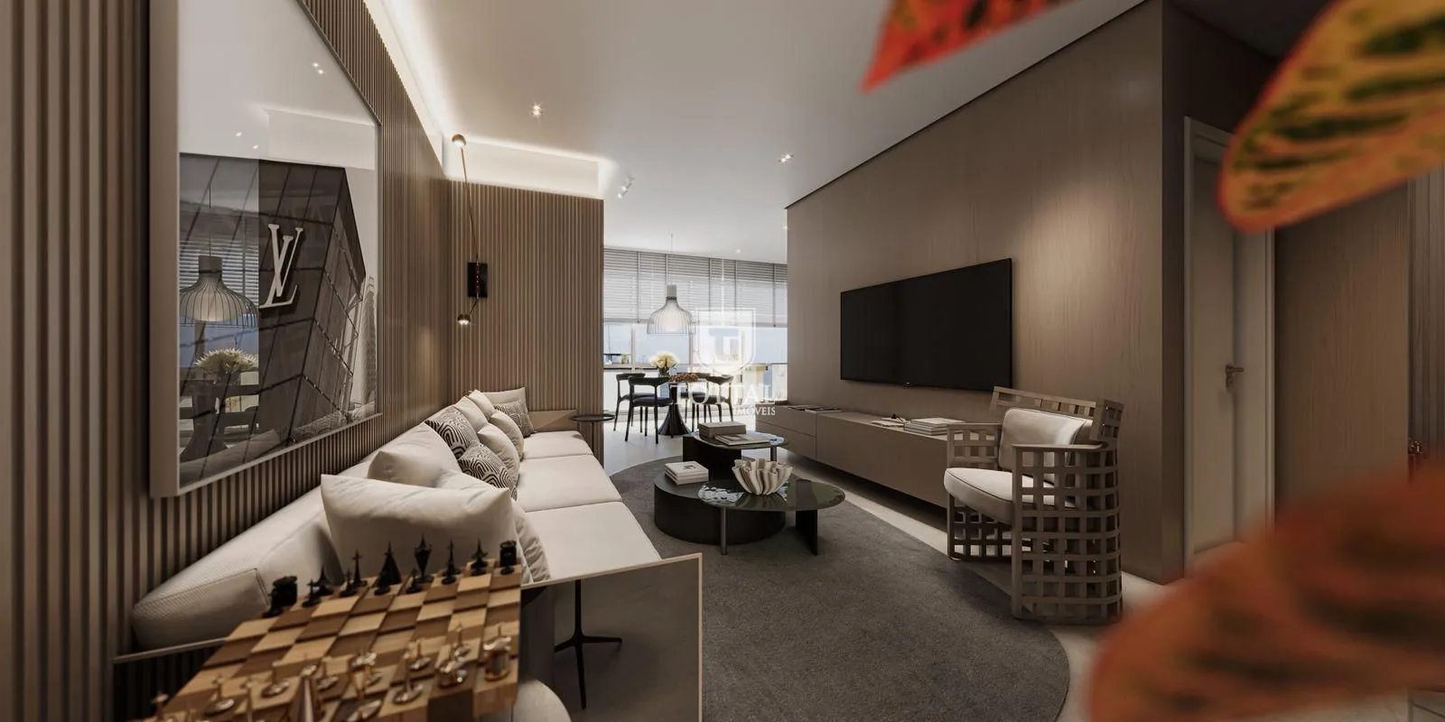 O living integrado amplia a sensação de espaço e conecta os ambientes de forma elegante, proporcionando momentos únicos em família. A varanda gourmet é um convite para desfrutar bons momentos, enquanto a vista panorâmica completa a experiência com um toque especial de exclusividade e tranquilidade.