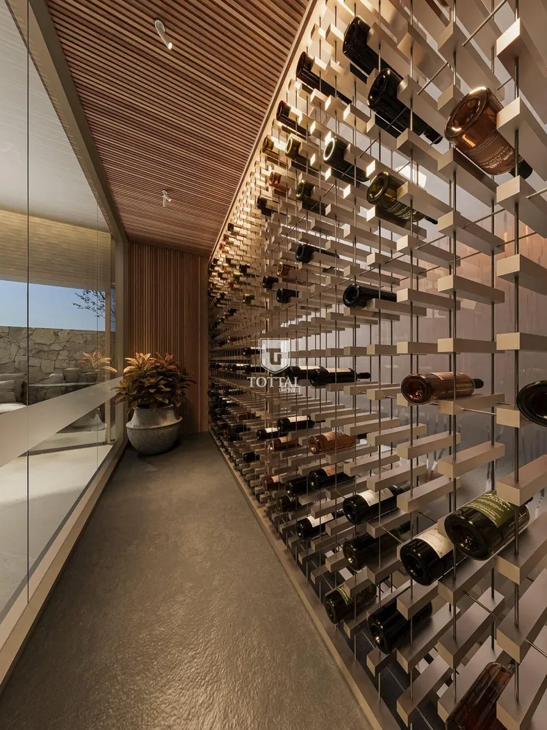 Espaço gourmet com wine bar e adega climatizada compartilhada