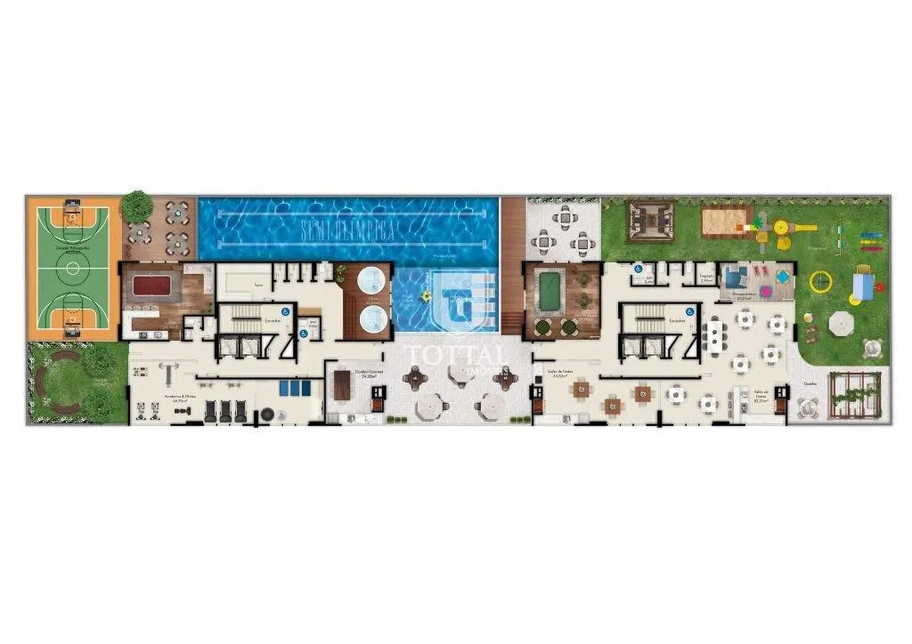 Sala de jogos e quadra poliesportiva