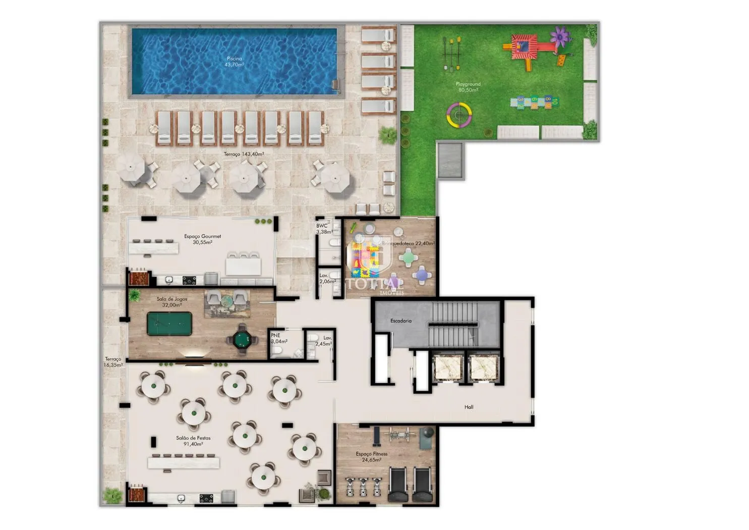 Estrutura completa de lazer e conveniência