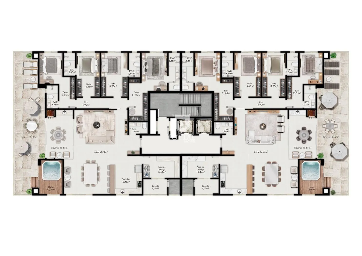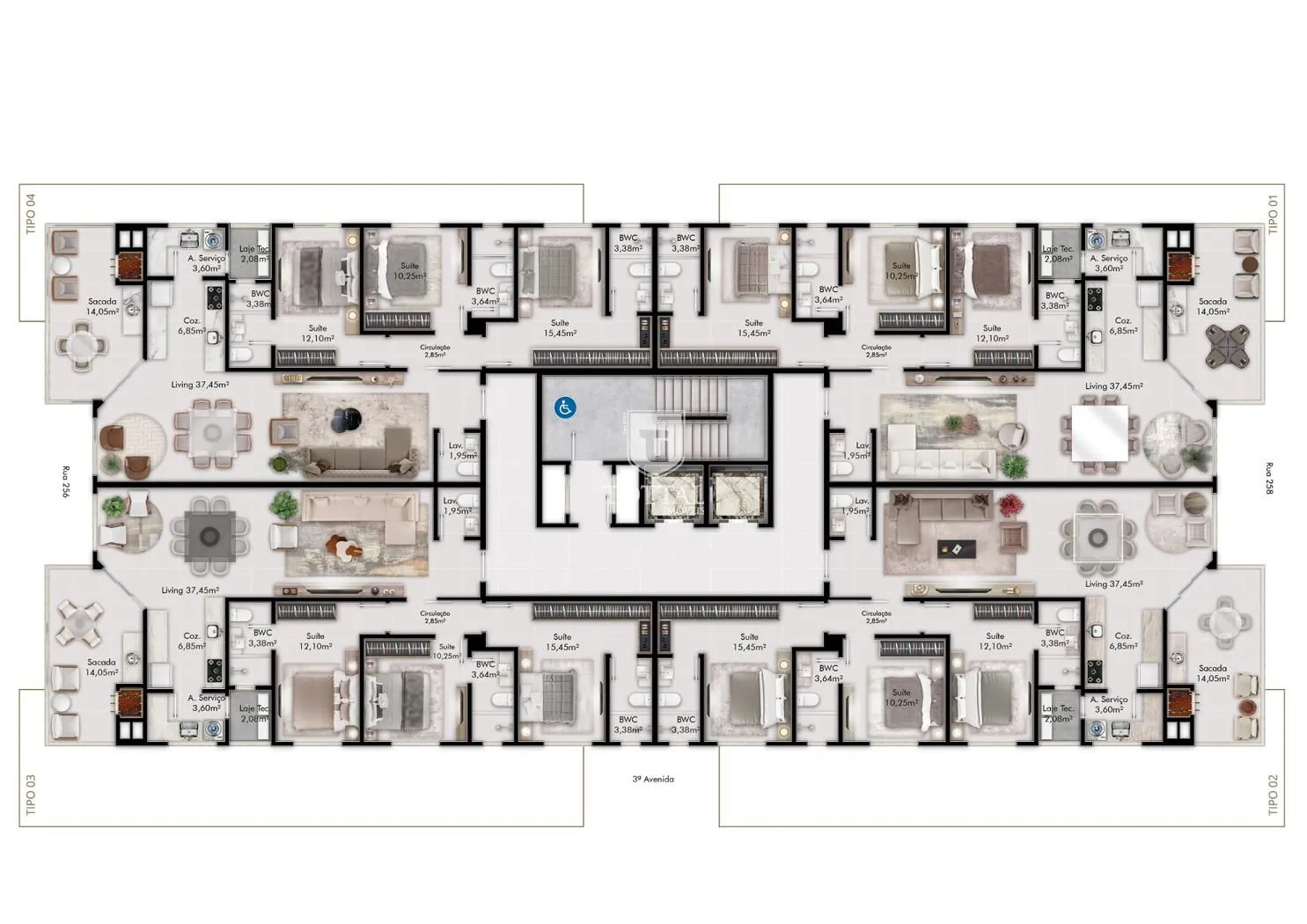 4 apartamentos por andar