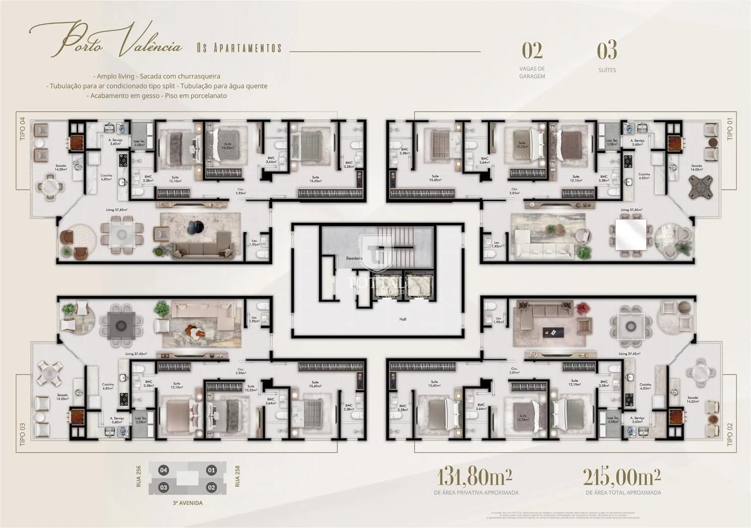 O Residencial Porto Valência combina modernidade, bem-estar e exclusividade em uma das regiões mais valorizadas de Itapema, no bairro Meia Praia. Localizado em uma das principais avenidas da cidade, você terá ao alcance de poucos passos tudo o que sua família precisa: supermercados, padarias, escolas de qualidade, restaurantes e uma completa infraestrutura de serviços. E o melhor: apenas 625 metros do mar, permitindo aproveitar o melhor do litoral todos os dias.