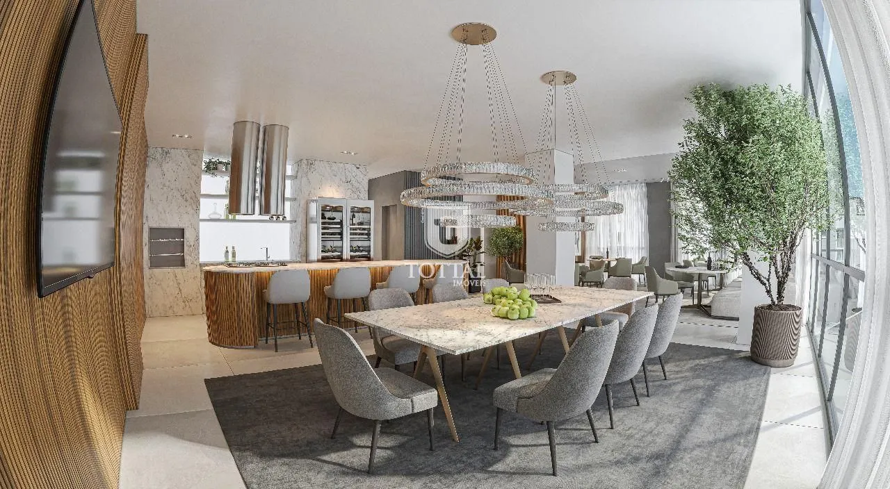 O empreendimento conta com 23 andares e um alto padrão de acabamento, incluindo diferenciais como persianas automatizadas nos dormitórios, infraestrutura para carregamento de veículos elétricos e sistema moderno de segurança.