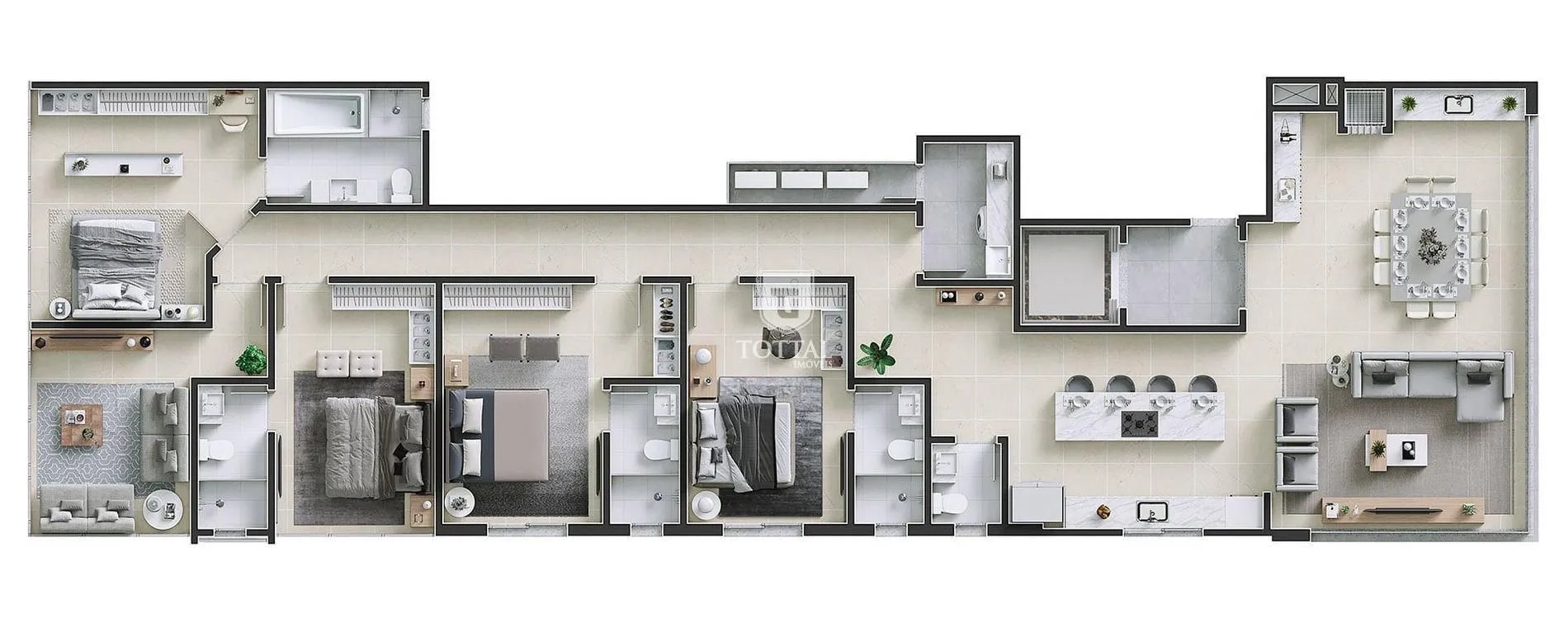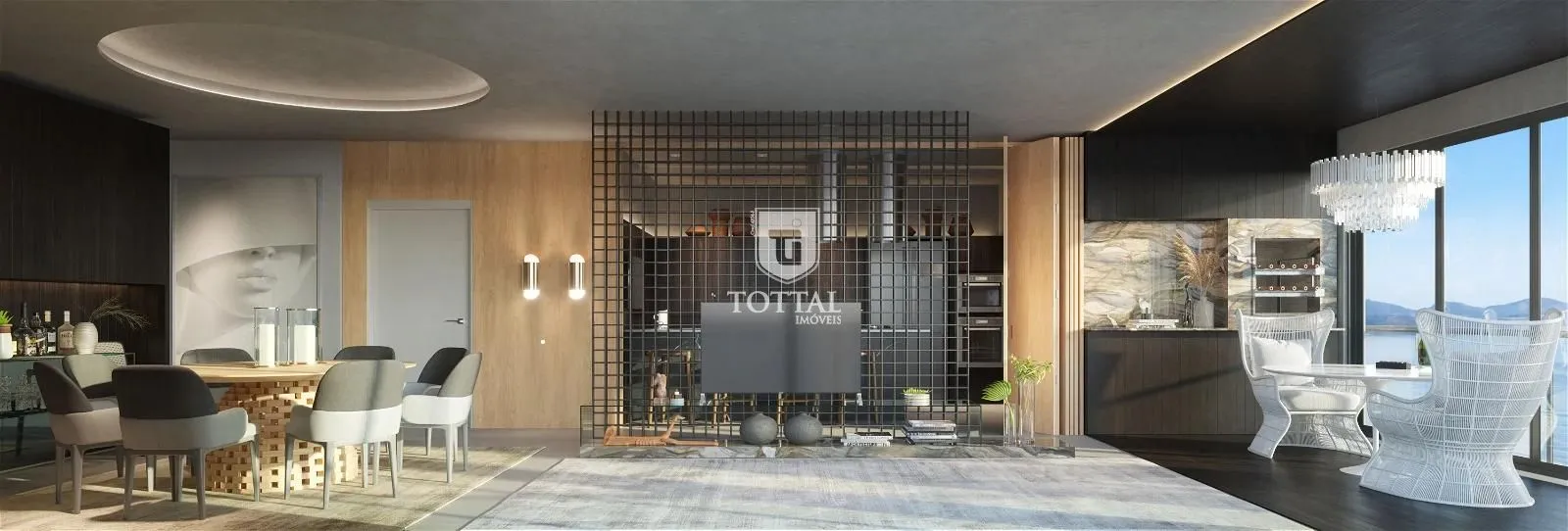 O apartamento possui 205 m² privativos cuidadosamente distribuídos, com 4 suítes amplas, incluindo uma suíte master elegante. O living integrado conecta sala de estar e jantar em um espaço arejado e iluminado, perfeito para receber amigos e familiares. A cozinha planejada, a área de serviço funcional e o lavabo complementam o projeto. Na varanda gourmet com churrasqueira, você terá momentos únicos com uma vista privilegiada.