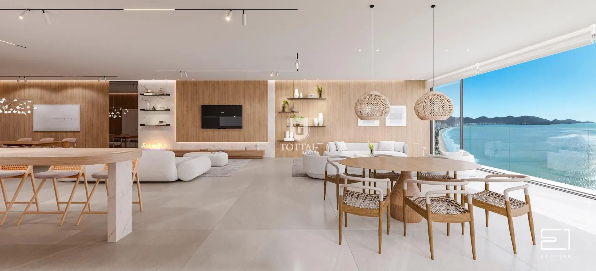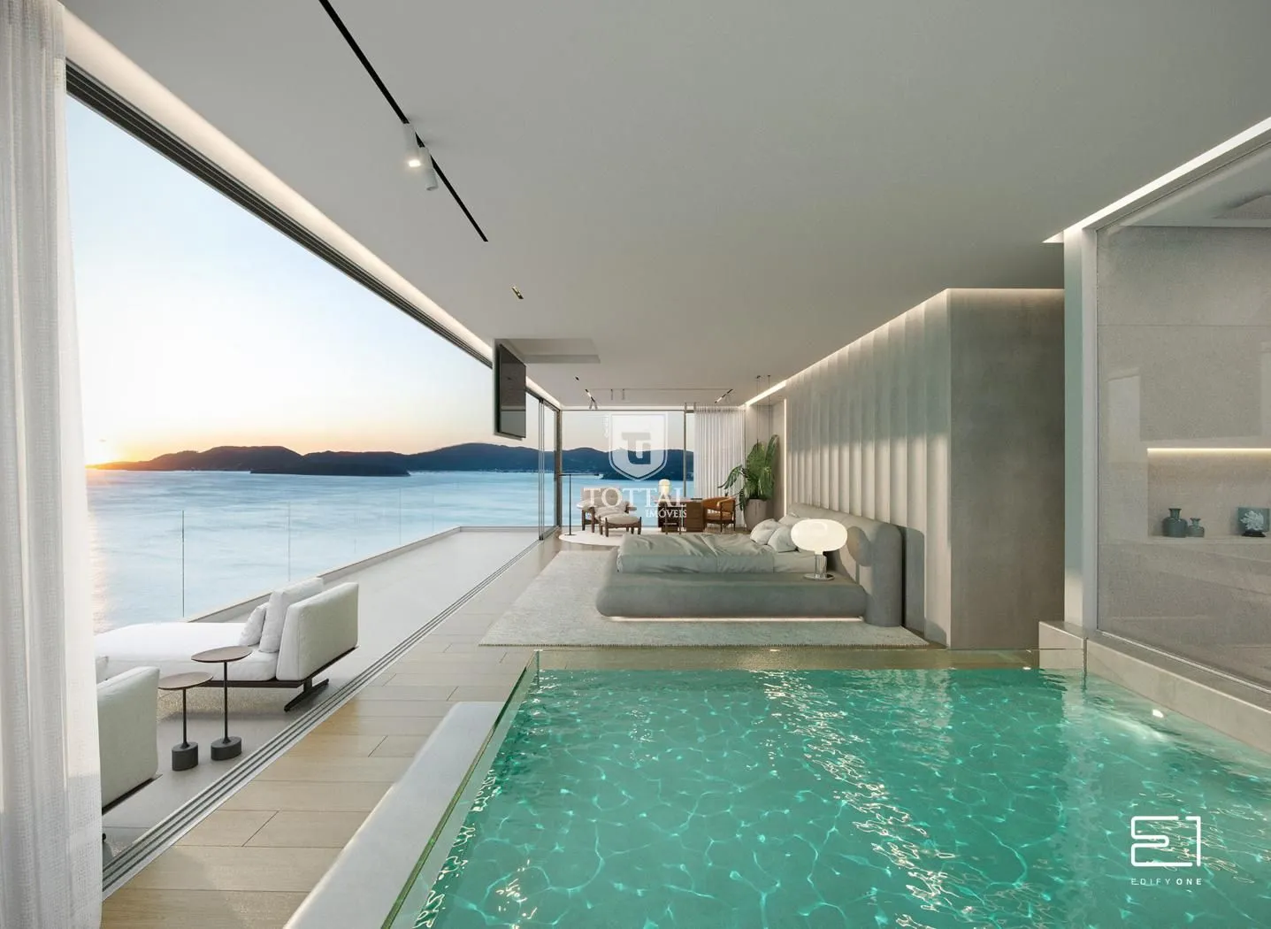 Um grande diferencial é o fechamento em vidro do piso ao teto, que garante integração com a paisagem e uma experiência única de viver com o mar aos seus pés. Um verdadeiro privilégio para quem busca sofisticação e qualidade de vida.