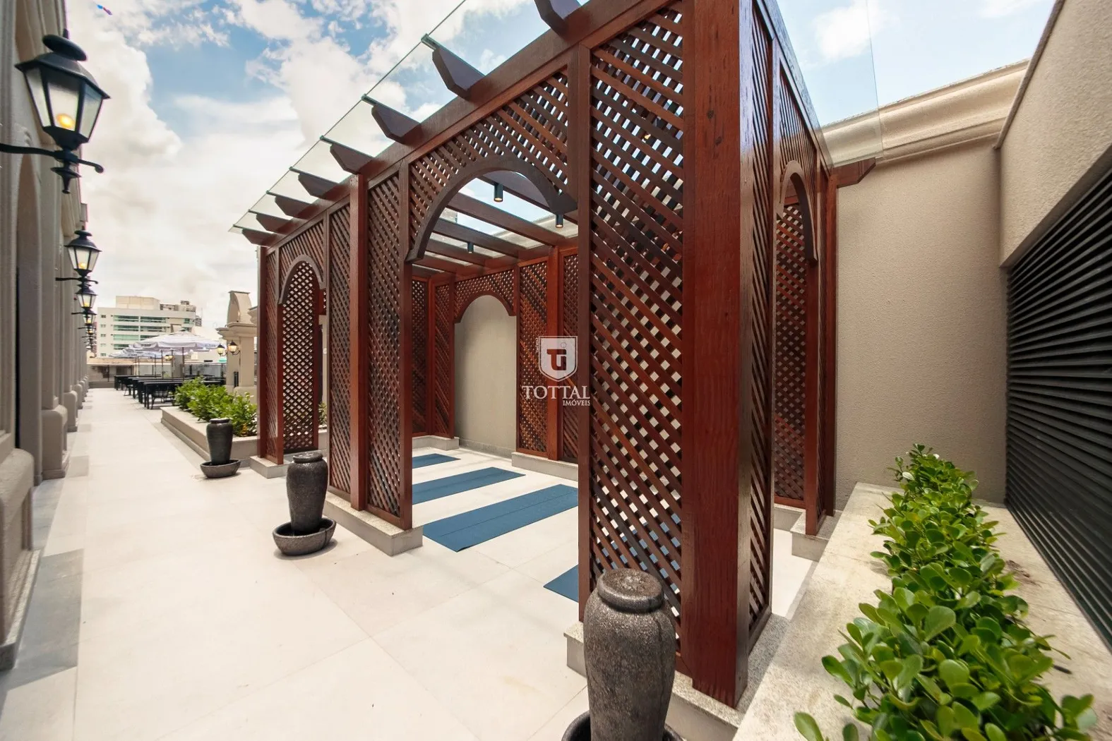 Áreas externas planejadas para bem-estar e contemplação