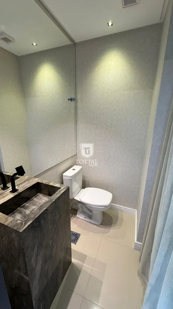 A sala conta com cozinha e banheiro de serviço, trazendo mais autonomia e praticidade para a rotina. Os móveis planejados e armários embutidos otimizam o espaço e garantem organização, enquanto o acabamento em gesso agrega sofisticação ao ambiente.